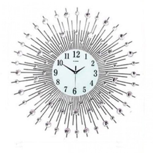 - 1 x Μεγάλο Μεταλλικό Ρολόι Τοίχου Kαθρέφτης - 'Ηλιος με Κρύσταλλα 70x70cm