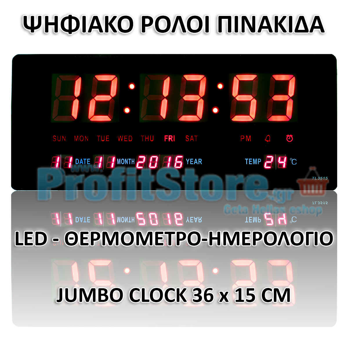 Μεγάλο Ψηφιακό Ρολόι - Πινακίδα LED με Θερμόμετρο και Ημερολόγιο TL3515