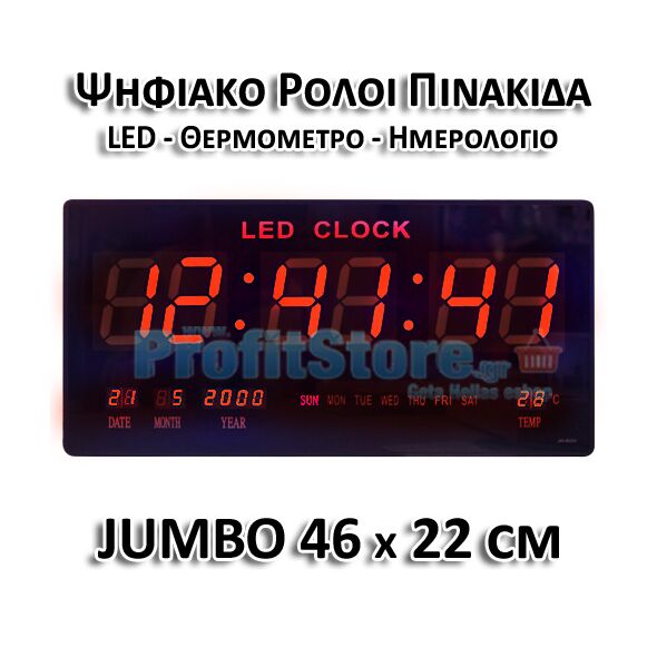 Μεγάλο Ψηφιακό Ρολόι - Πινακίδα LED με Θερμόμετρο και Ημερολόγιο.