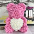 Μεγάλο Τριανταφυλλένιο Αρκουδάκι με Καρδούλα 40cm Σε Συσκευασία Δώρου - Δώρο για Άγιο Βαλεντίνο - Τεχνητά Ροδοπέταλα Τριαντάφυλλα σε 4 χρώματα