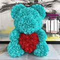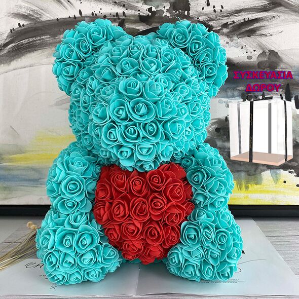 Μεγάλο Τριανταφυλλένιο Αρκουδάκι με Καρδούλα 40cm Σε Συσκευασία Δώρου - Δώρο για Άγιο Βαλεντίνο - Τεχνητά Ροδοπέταλα Τριαντάφυλλα Τιρκουάζ