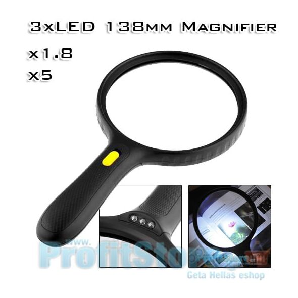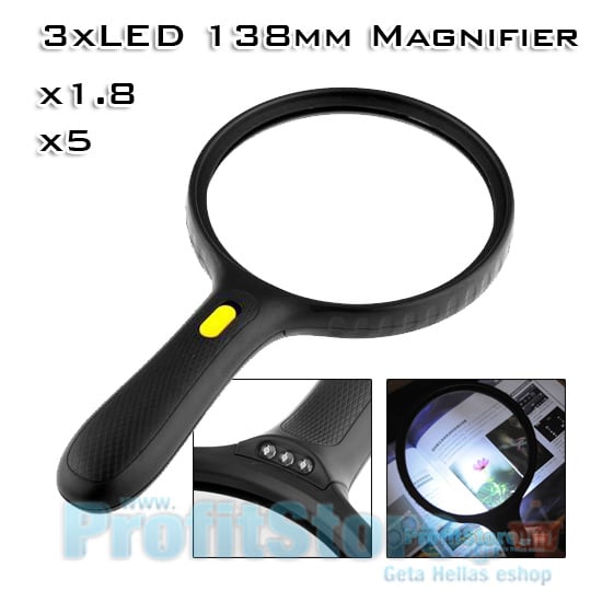 Μεγάλος Μεγεθυντικός Φακός Χειρός 138mm x1,8 με Ισχυρό Led Φωτισμό
