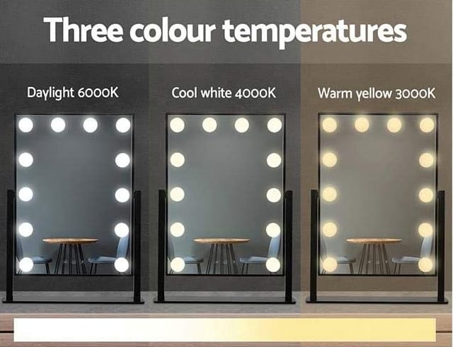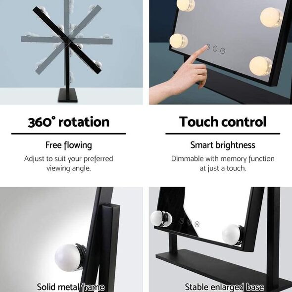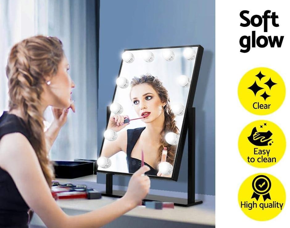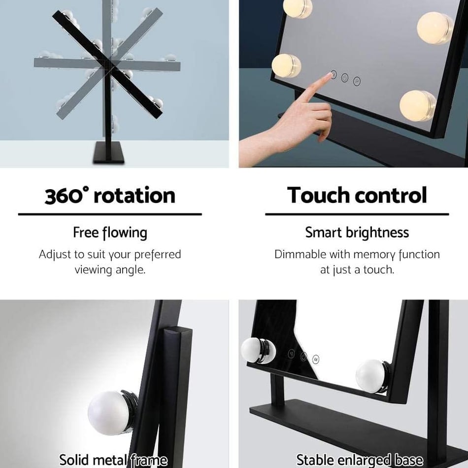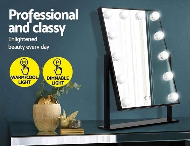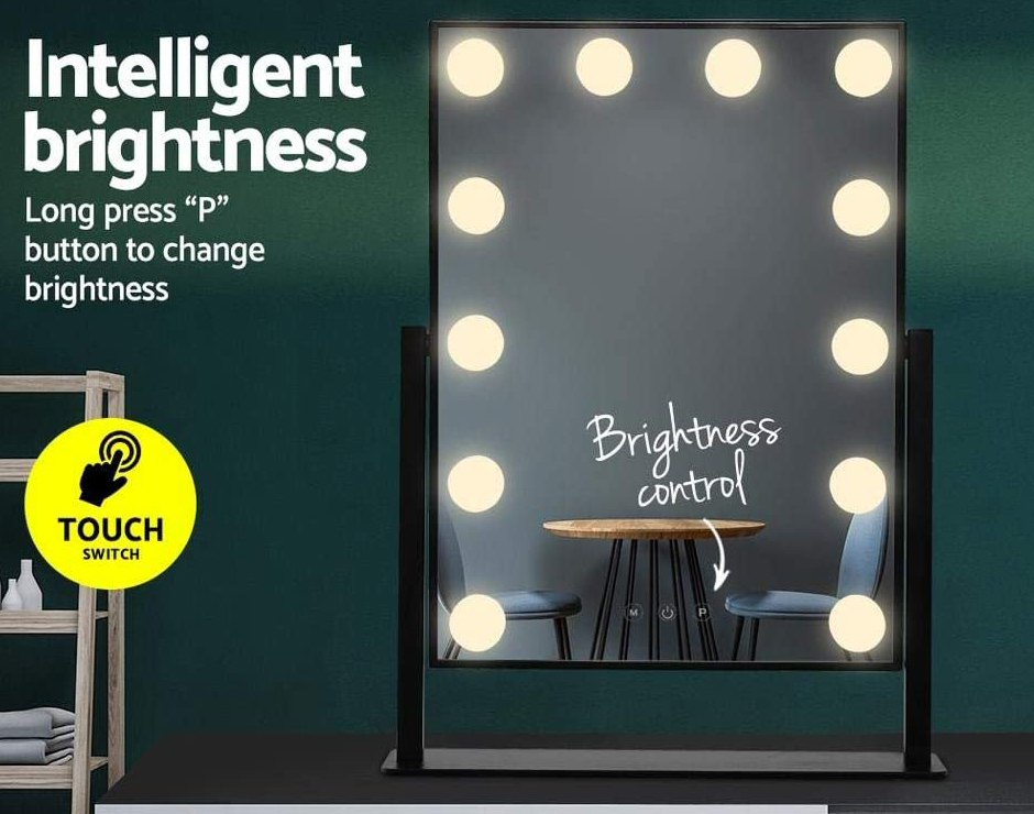 Μεγάλος Μεταλλικός Καθρέφτης Μακιγιάζ με 12 LED Ρυθμιζόμενο Φωτισμό Αφής 40x30cm - Mirror Makeup HD Beauty Μαύρο