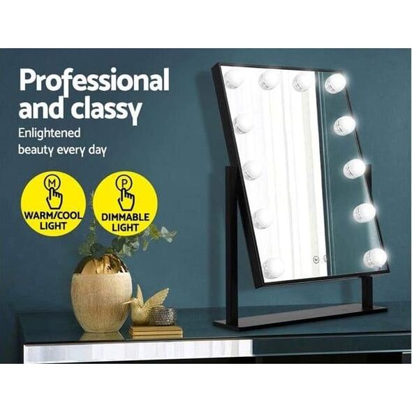 Μεγάλος Μεταλλικός Καθρέφτης Μακιγιάζ με 12 LED Ρυθμιζόμενο Φωτισμό Αφής 40x30cm - Mirror Makeup HD Beauty Μαύρο