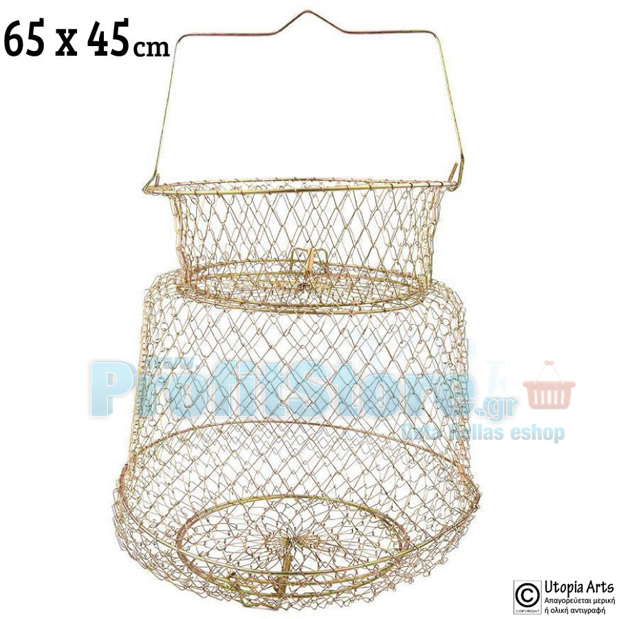 Μεγάλος Μεταλλικός Κιούρτος - Ψαροκάλαθο Συρμάτινο 65 x 45 cm & Εισόδους 20 εκατοστών - Παγίδα ψαριών