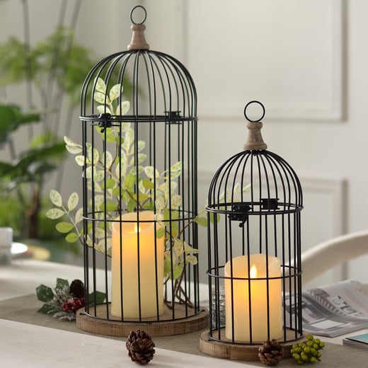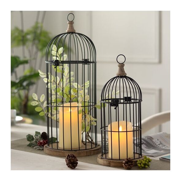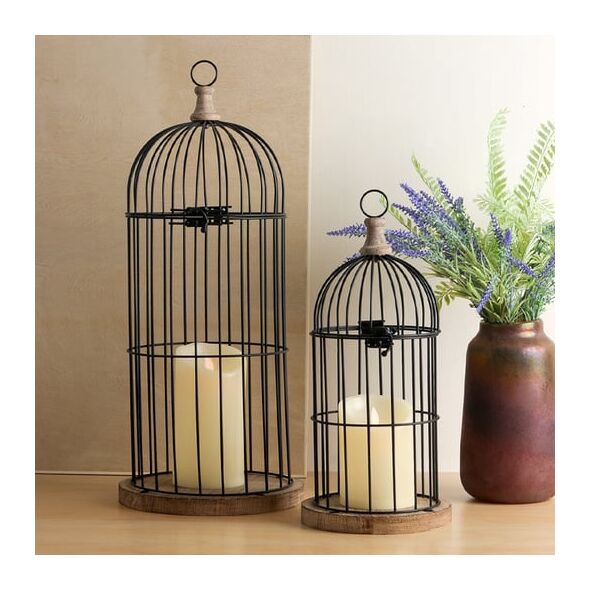 Μεσαίο Διακοσμητικό Φανάρι Μεταλλικό με Ξύλινη Βάση "Bird Cage" Μαυρο