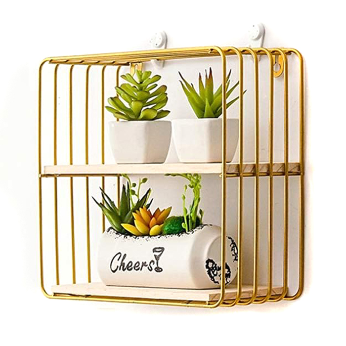 Μεταλλική Επιτοίχια Ραφιέρα με Ξύλινα Ράφια MILANO Χρυσό 25x25x12εκ