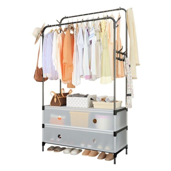 Ο υπερυψωμένος σχεδιασμός επιτρέπει άνετο κρέμασμα μακριών ενδυμάτων χωρίς να ακουμπούν στο κάτω τμήμα, ενώ τα κάτω ράφια κρατούν τακτοποιημένα εποχιακά είδη και καθημερινά αντικείμενα.