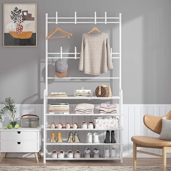 Μεταλλική "όλα σε ένα" Ραφιέρα Παπουτσοθήκη 170x80x26εκ. & Κρεμάστρα για την Είσοδο, Τουαλέτα κλπ - Για Παπούτσια Μπουφάν Καπέλα & Μικροαντικείμενα Άσπρη