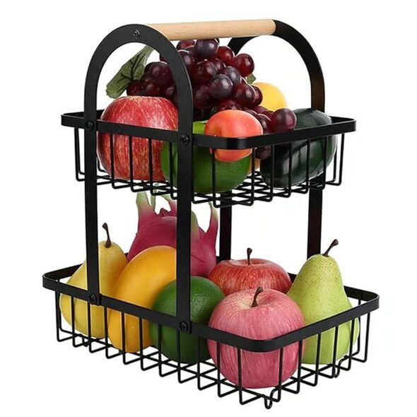 Μεταλλική Ραφιέρα – Φρουτιέρα 2 Επιπέδων 37x30x18.5cm με Ξύλινη Λαβή