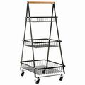 Μεταλλική Τροχήλατη Ραφιέρα - Καρότσι Τριών Επιπέδων σε Σχήμα Πυραμίδας με Ξύλινη Λαβή, 3 Καλάθια & Ροδάκια, Τρόλεϊ Οργάνωσης / Διακόσμησης 90x50x36cm σε Μαύρο & Άσπρο OEM