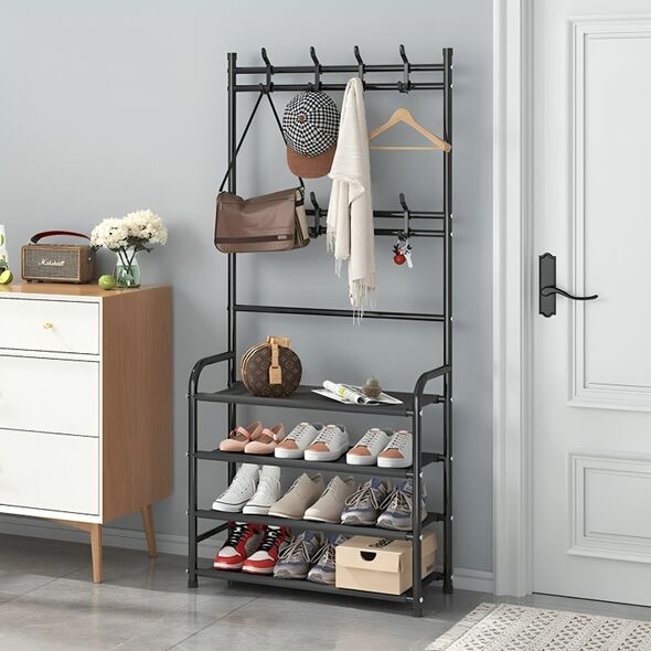 Δεν αποθηκεύει μόνο τα παπούτσια σας, όπως κάθε κοινή παπουτσοθήκη, αλλά σας δίνει τη δυνατότητα να κρεμάσετε τα καπέλα σας, τις τσάντες σας, τα πανωφόρια σας, τις ομπρέλες σας και ό,τι μικροαντικείμενο