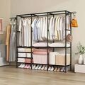 Μεταλλική Τριπλή Κρεμάστρα - Παπουτσοθήκη Δαπέδου με 8 Ράφια - Βεστιάριο - Γκαρνταρόμπα 162 x 43 x 175 cm Μαύρο