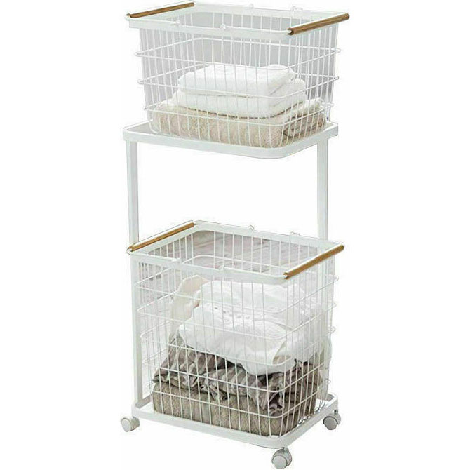 Μεταλλική Βάση Οργάνωσης Απλύτων με Αποσπώμενα Καλάθια και Ρόδες για Εύκολη Μετακίνηση - Laundry Time 29.5 x 40 x 90cm Λευκό