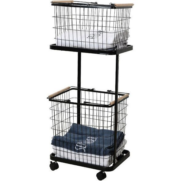 Μεταλλική Βάση Οργάνωσης Απλύτων με Αποσπώμενα Καλάθια και Ρόδες για Εύκολη Μετακίνηση - Laundry Time 29.5 x 40 x 90cm Μαύρο