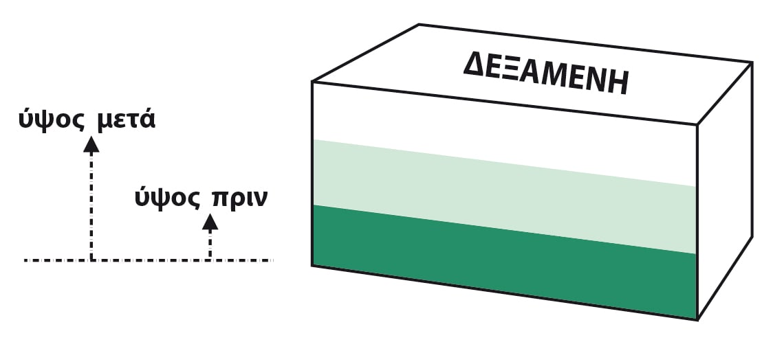 Αυτό μπορούμε να το υπολογίσουμε ως εξής (όταν η δεξαμενή μας είναι ορθογώνια ή τετράγωνη):