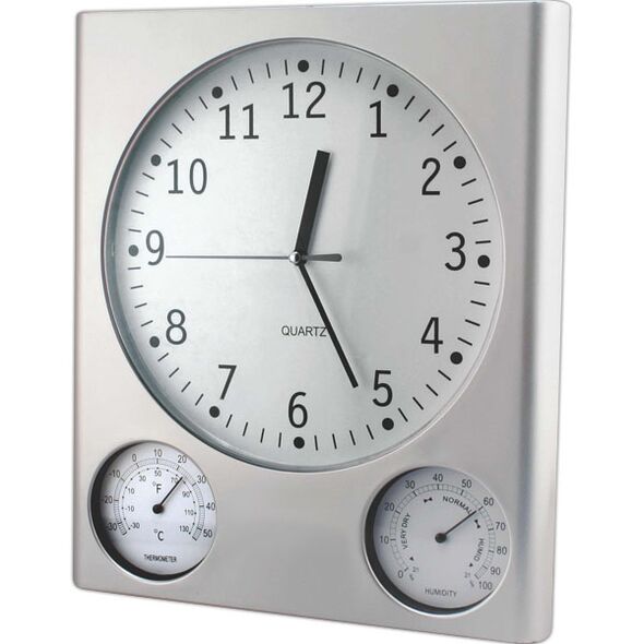 Ρολόι τοίχου αθόρυβο με μηχανισμό Quartz, Υγρόμετρο και Θερμόμετρο.