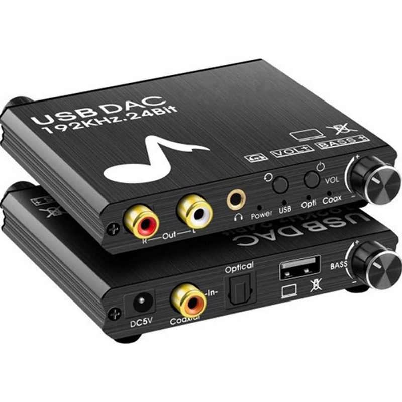 Μετατροπέας Ψηφιακού σε Αναλογικό Ήχο 192 Khz με Ρυθμιζόμενο Μπάσο, για PC , PS4, XBOX, TV, TV BOX, DVD, με USB, Coaxial, Optical Input & RCA output, ANDOWL