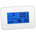 Μετεωρολογικός σταθμός με θερμοβαρόμετρο για πρόγνωση καιρού, ενδείξεις θερμοκρασίας και υγρασίας, έγχρωμη φωτιζόμενη LCD οθόνη με μεγάλα ψηφία, ημερολόγιο και ψηφιακό ρολόι με ξυπνητήρι.