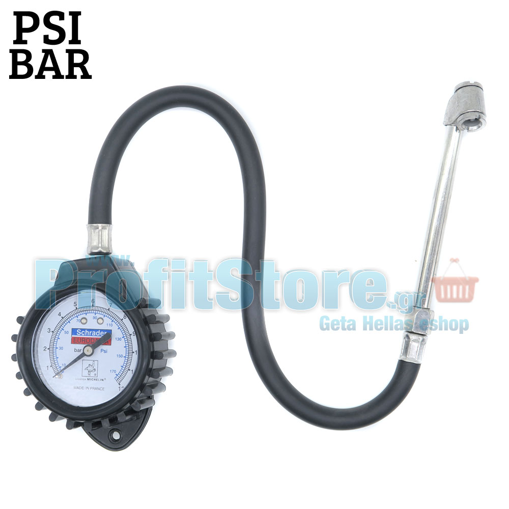 Μετρητής Πίεσης Ελαστικών Αυτοκινήτου, Μηχανής, Ποδηλάτου με Εύκαμπτο Βραχίονα & Μανόμετρο PSI, BAR