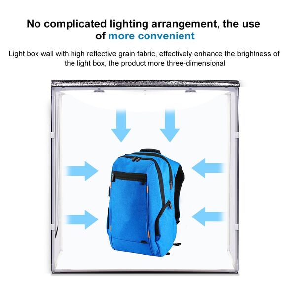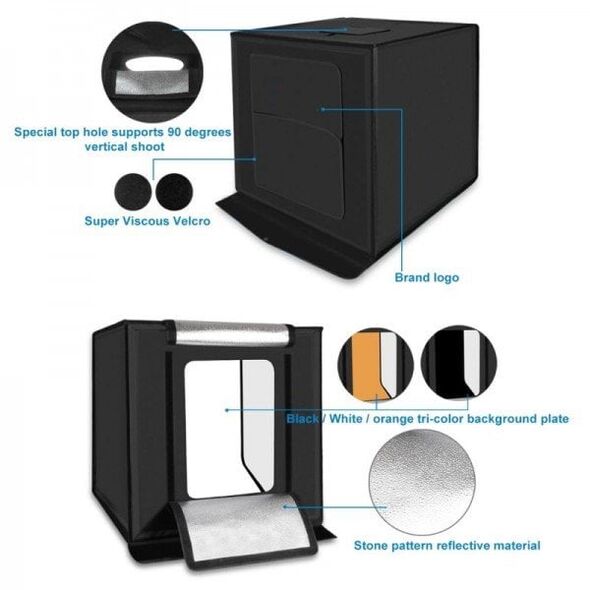 - Με LED εσωτερικό φωτισμό για την αποφυγή ενοχλητικών σκιών στα αντικείμενα που θέλετε να φωτογραφίσετε.