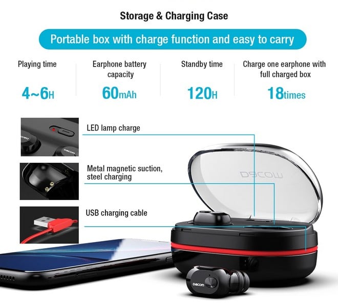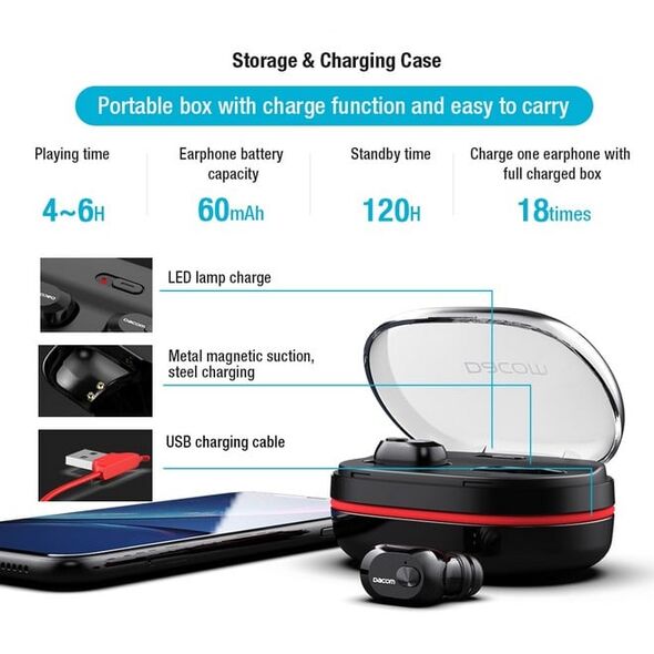 Μίνι Ασύρματα Bluetooth Ακουστικά Dacom K6H Pro με Θήκη Φόρτισης - Handsfree Wireless Headset