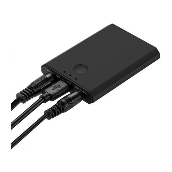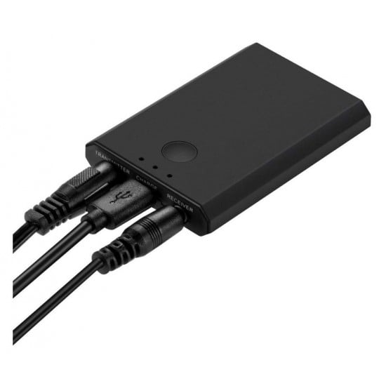 Πέρα από την ασύρματη λήψη σήματος, αυτή η συσκευή μπορεί να λάβει ενσύρματα σήμα από κάποιο πομπό μουσικής και ήχου, όπως για παράδειγμα το λάπτοπ ή έναν Η/Υ, και να αναπαραγάγει / μεταδώσει αυτό το σήμα ασύρματα! Αυτό σημαίνει πως θα μπορείτε να συνδέσετε πχ τα bluetooth ακουστικά σας με κάθε συσκευή ήχου που δεν διαθέτει bluetooth.
