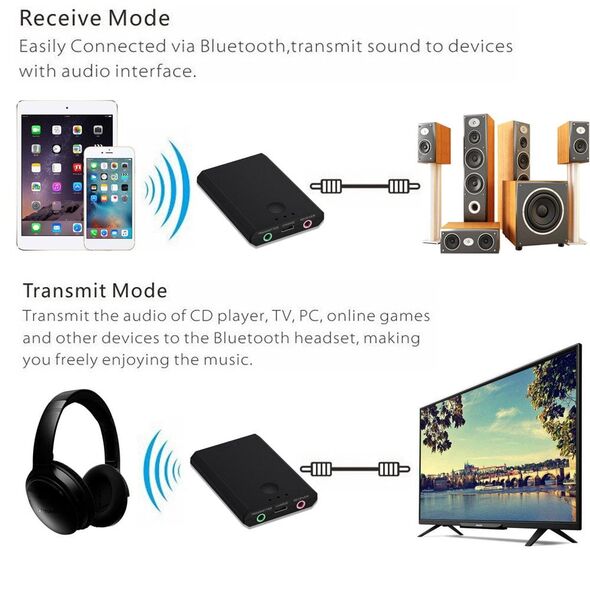 Αυτή η super mini συσκευή bluetooth δέκτης & πομπός μετάδοσης με 2 Modes λειτουργίας, θα σας απαλλάξει από την δυσφορία και τους περιορισμούς των καλωδίων. Συνδέστε οποιεσδήποτε συσκευές λήψης ή αναπαραγωγής ήχου μεταξύ τους, χωρίς απαραίτητα να διαθέτουν και οι 2 bluetooth.*