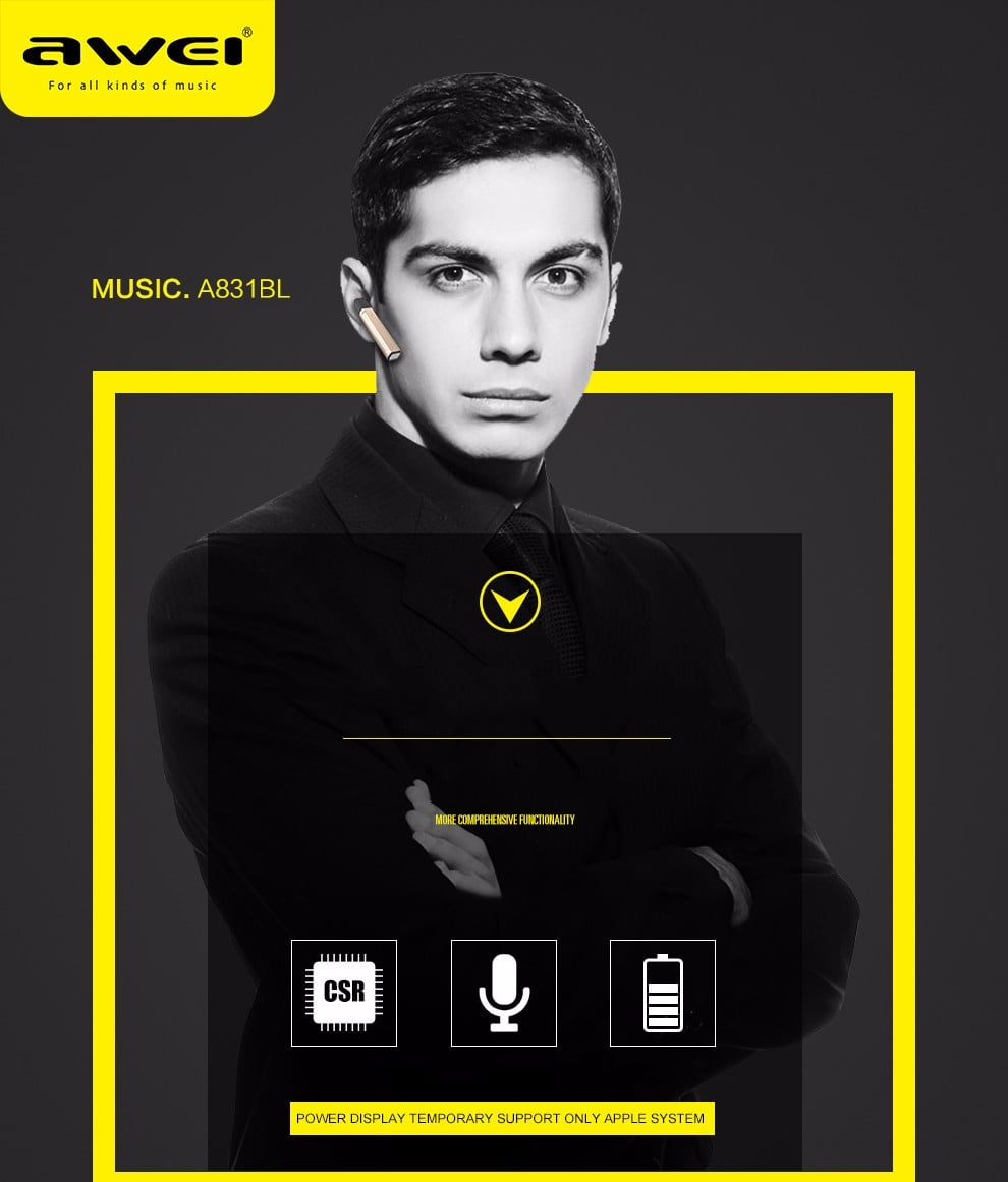 Mini Elegant Bluetooth Ασύρματο Ακουστικό Handsfree Awei® - A831BL- Smart Bussiness Headset