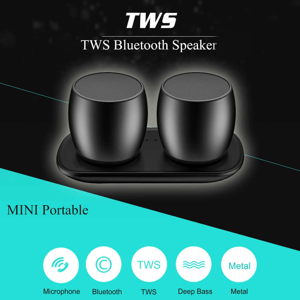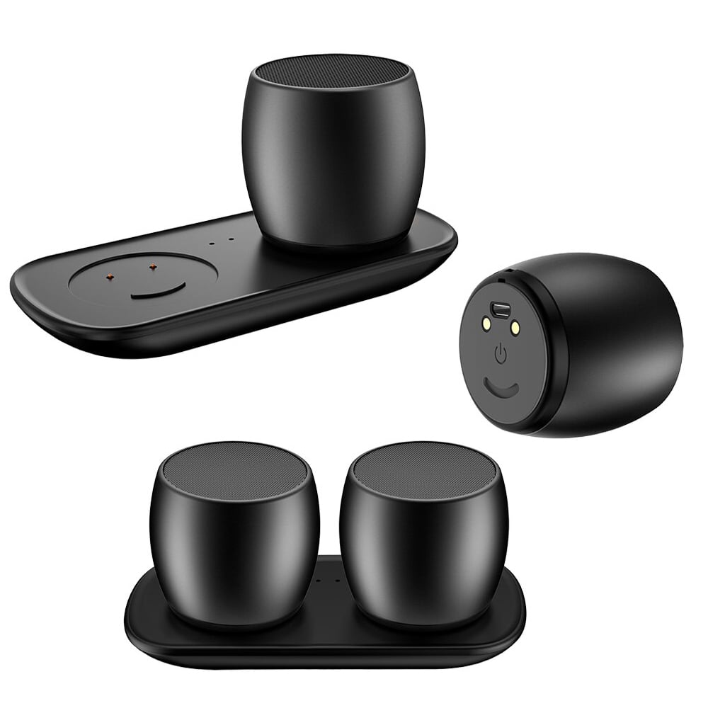 Μινι ασύρματο ζευγάρι Bluetooth ηχεία για να ακούτε τη μουσική σας όπου εσείς θέλετε! Διαθέτει βάση ασύρματης φόρτισης.