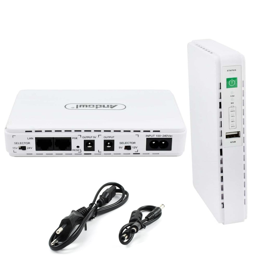 • 1 x Μίνι Φορητό Δικτυακό DC UPS RJ-45 25W 12000mAh USB - Λευκό