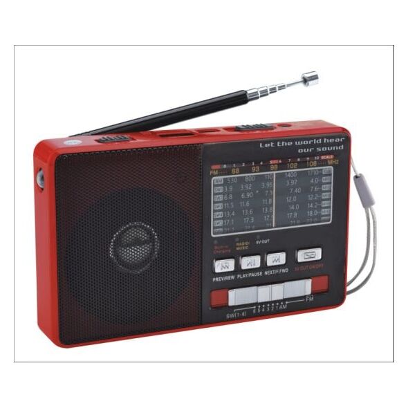 Το απόλυτο φορητό ραδιοφωνάκι και MP3 player έγινε ακόμα καλύτερο ! Παίζει μουσική από USB, από κάρτα μνήμης, από κινητό και mp3, μέσω Bluetooth, έχει ραδιόφωνο, δυνατό ηχείο, λειτουργεί με επαναφορτιζόμενη μπαταρία, έχει εκπληκτικό ήχο ενώ διαθέτει και ισχυρό φακό LED υψηλής φωτεινότητας.