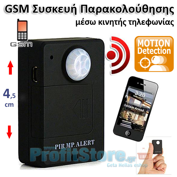 Αυτή η μικροσκοπική συσκευή δέχεται μία κάρτα κινητής τηλεφωνίας gsm και όταν ανιχνεύσει κίνηση στο χώρο θα σας καλέσει στο κινητό σας και μπορείτε να ακούστε τα πάντα στο χώρο σας !