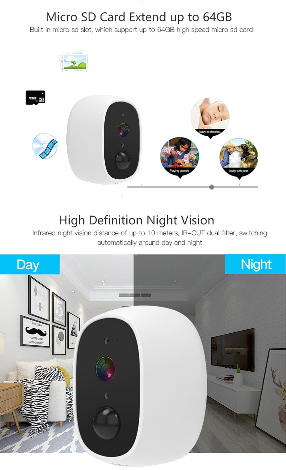 Η κάμερα ασφαλείας Hebeiros είναι ψηφιακή (IP), συνδέεται στο δίκτυο σας ασύρματα μέσω Wi-Fi και έχει μεγάλο εύρος λήψης.