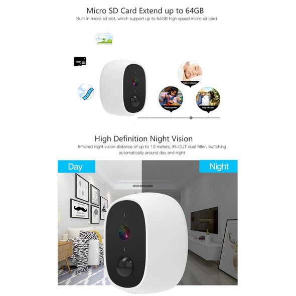 Μπορείτε ακόμη μέσω εφαρμογής στο smartphone κινητό σας, να χειριστείτε την κάμερα και να παρακολουθήσετε live την περιοχή λήψης που επιθυμείτε, ενώ ταυτόχρονα σας παρέχει υψηλής ποιότητας αμφίδρομη επικοινωνία μέσω του ηχείου και του μικροφώνου. Επίσης, έχει ενσωματωμένο αισθητήρα κίνησης υψηλής ευαισθησίας με ειδοποίηση στο κινητό σε περίπτωση που η κάμερα ανιχνεύσει κίνηση.