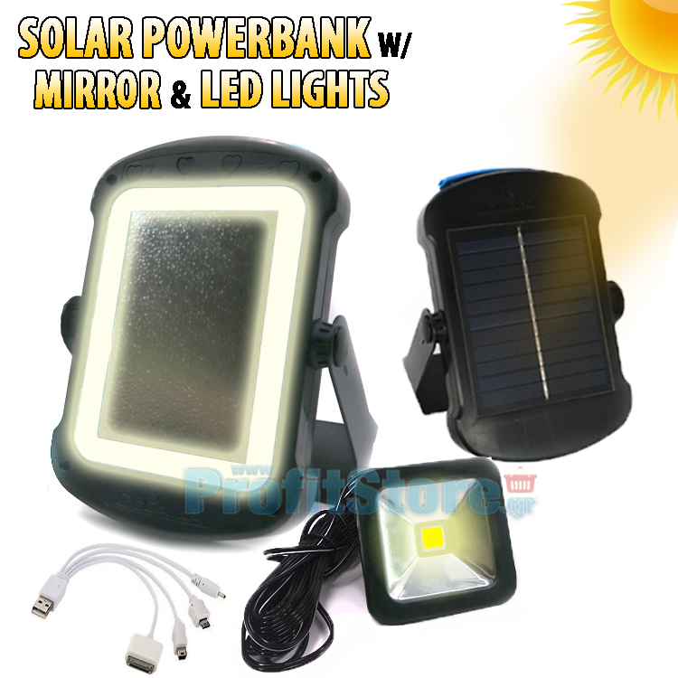 Μίνι Ηλιακό Φωτιστικό - Φορτιστής Powerbank - LED Καθρέφτης - USB Multi Function Solar Mirror Power Bank Cclamp