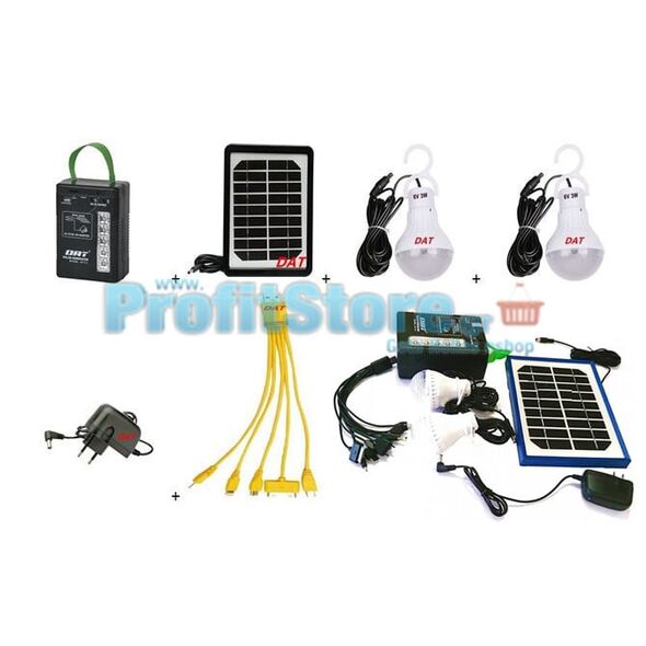 Mini Ηλιακό Πακέτο Φωτισμού & Φόρτισης με Panel, Μπαταρία με Φωτιστικό και Θύρα USB + 2 Λάμπες Led DAT- AT111