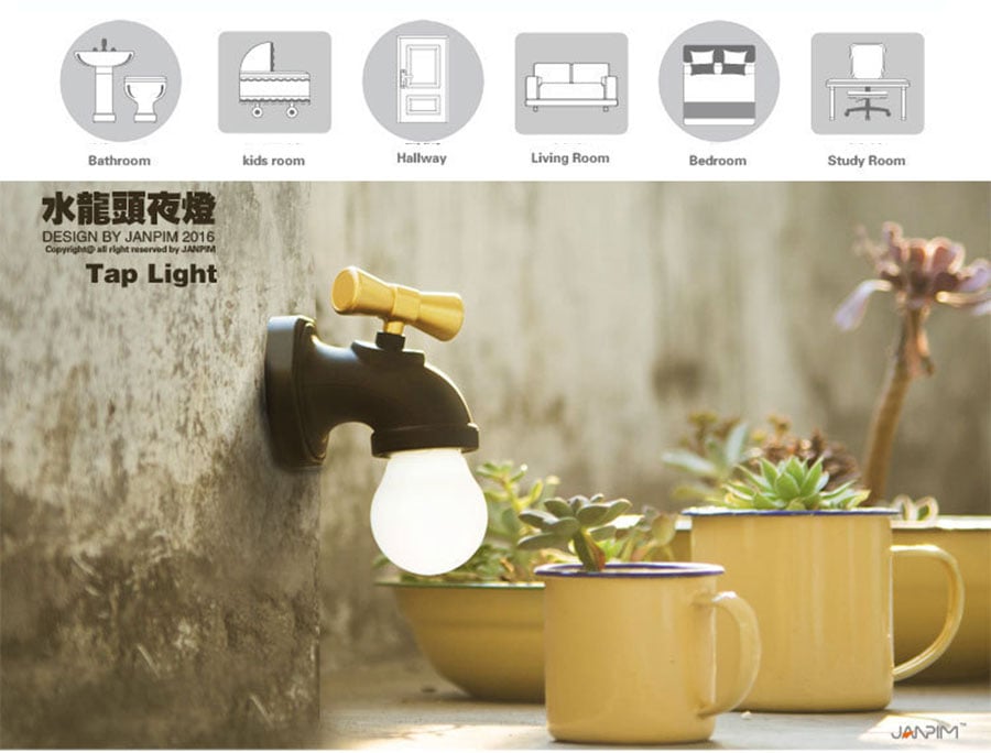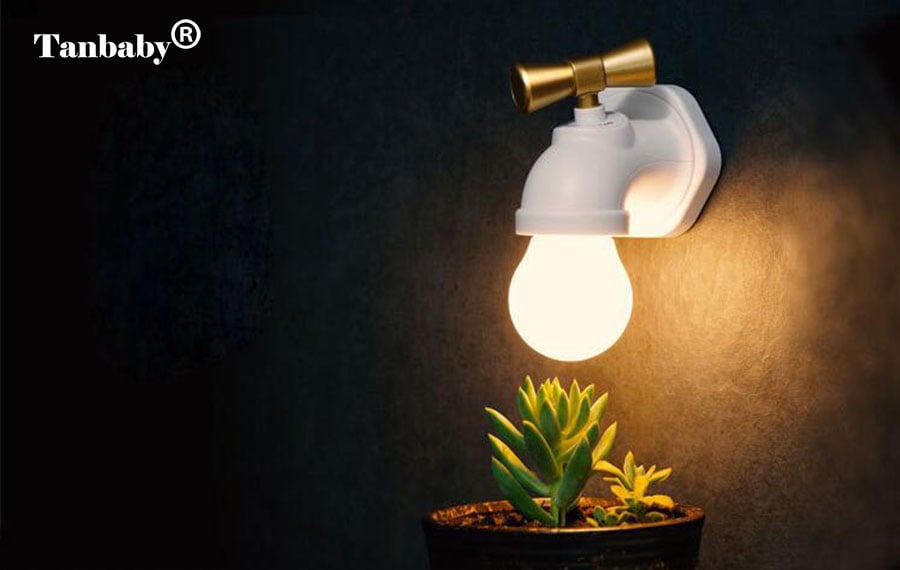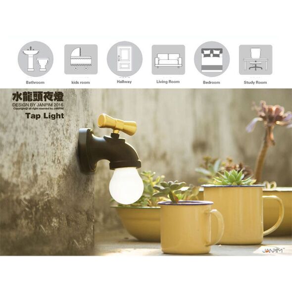 Led φωτάκι νυκτός σε σχήμα βρύσης που η λειτουργία του on/off είναι στην κάνουλα.