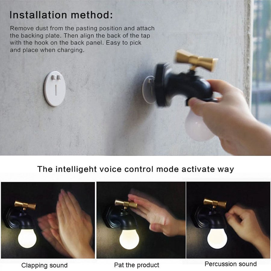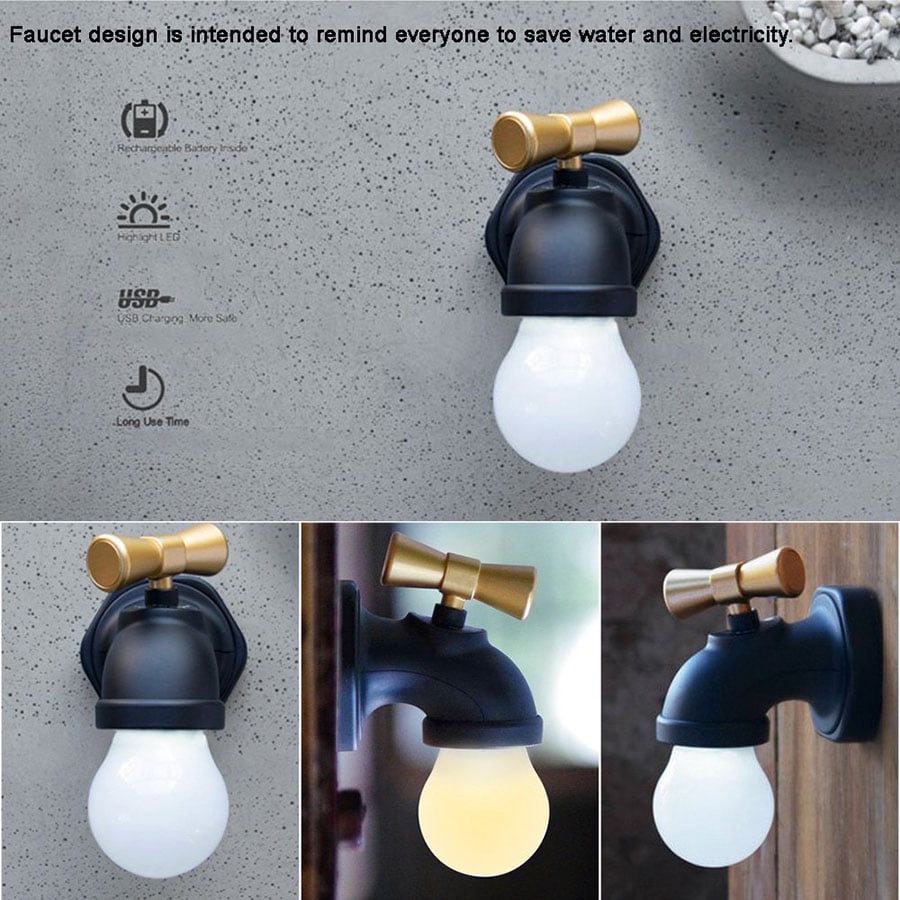 Mini LED Νυχτερινός Φωτισμός Τοίχου USB Επαναφορτιζόμενο σε Σχήμα Βρύσης