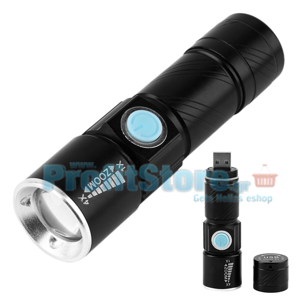 Mini Tactical Φακός ZOOM 200LM USB - Υψηλής Φωτεινότητας CREE LED Q5