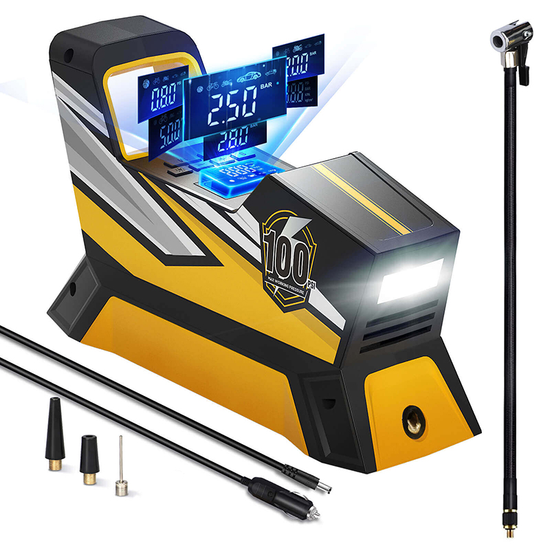 Mini Τρόμπα Έκτακτης Ανάγκης Αυτοκινήτου 150PSI CarSun® με Φακό, Οθόνη LED για Ρύθμιση & Προβολή Πίεσης 12V Κομπρεσέρ