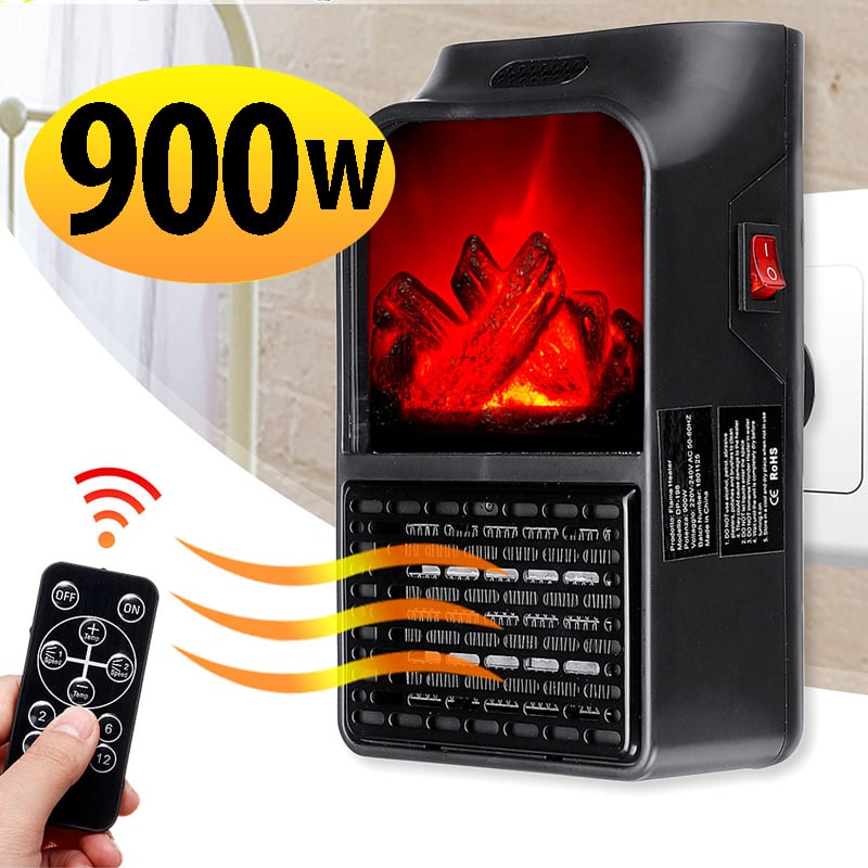 Μίνι Τζάκι Αερόθερμο με Εφέ Φλόγας 900Watt - Σόμπα Πρίζας με Θερμοστάτη, Χρονοδιακόπτη, LED Οθόνη & Τηλεχειριστήριο - Flame Heater ΟΕΜ