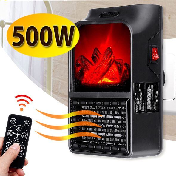 Μίνι Τζάκι Αερόθερμο με Εφέ Φλόγας - Σόμπα Πρίζας με Θερμοστάτη, Χρονοδιακόπτη, LED Οθόνη & Τηλεχειριστήριο - Flame Heater 500Watt