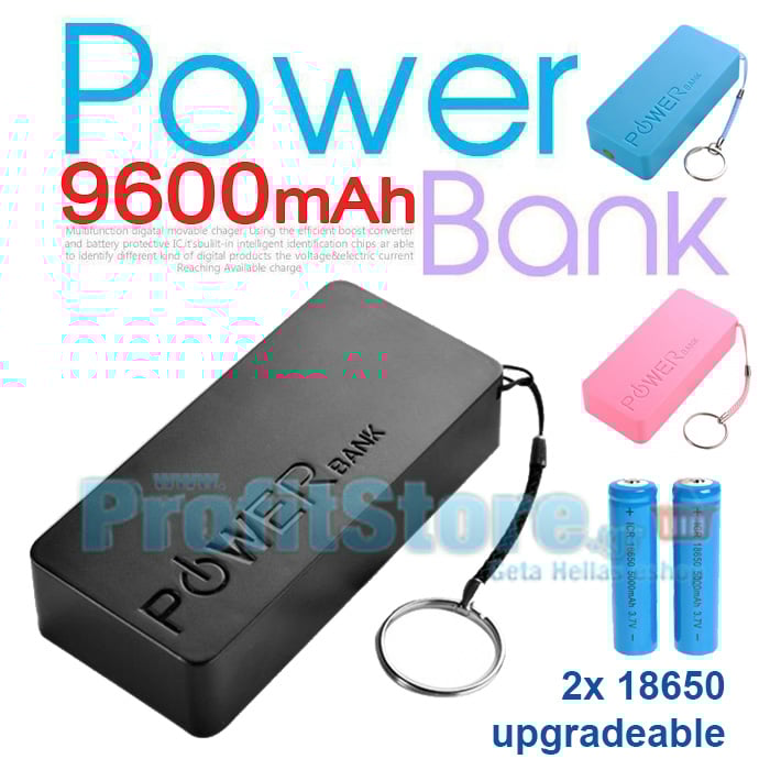 Μεγάλη χωρητικότητα 9600mAh*. Χρησιμοποιεί 2 x 18650 μπαταρίες που μπορούν εύκολα να αντικατασταθούν.