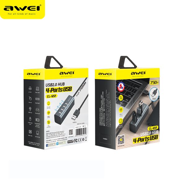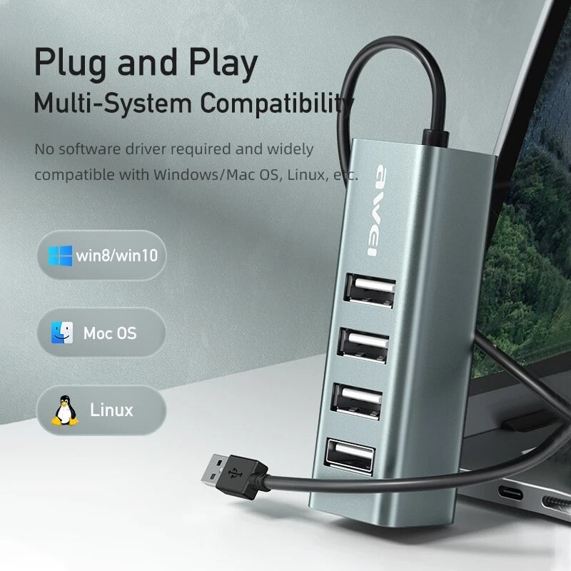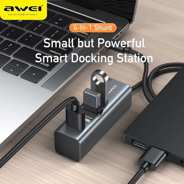 Mini USB UB 2.0 με 4 Θύρες για Υπολογιστές + Φόρτιση Συσκευών Awei® - Συμβατό με Macbook - Docking Station