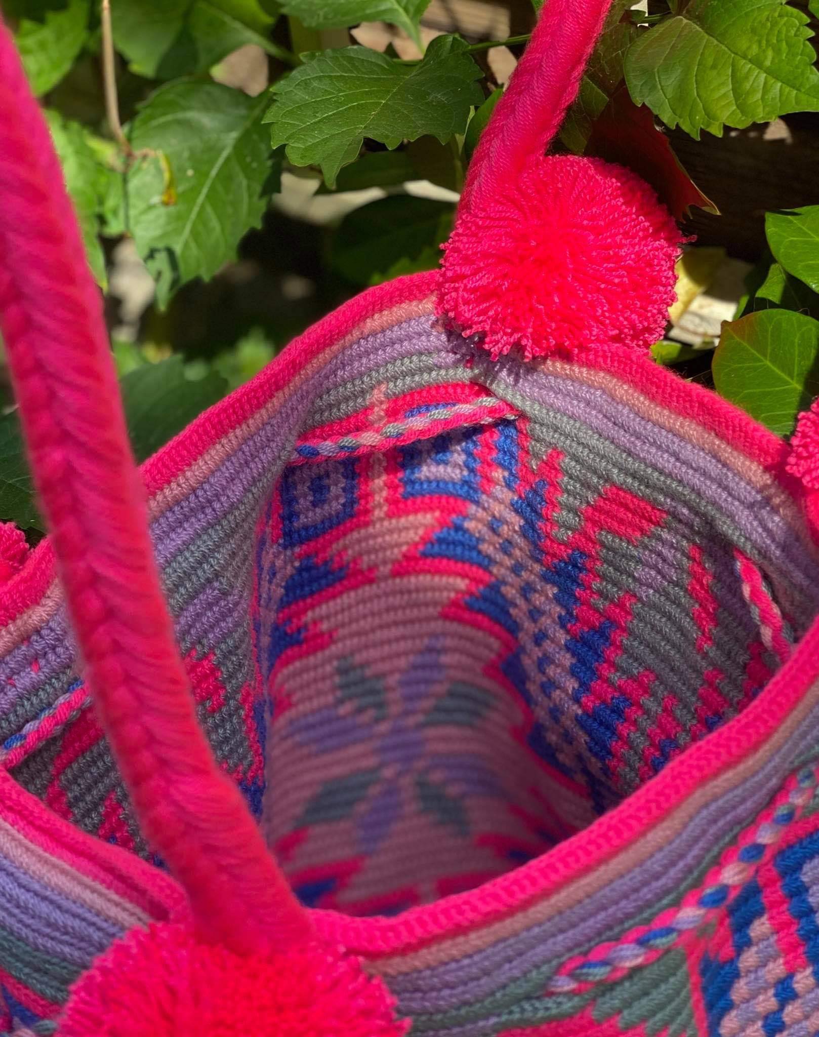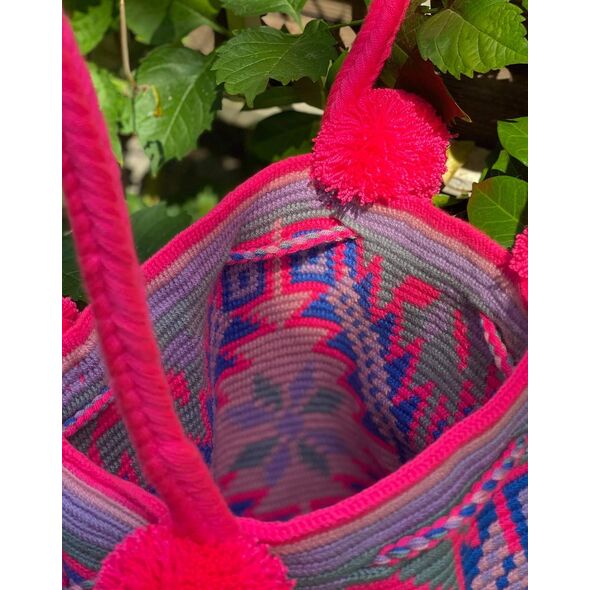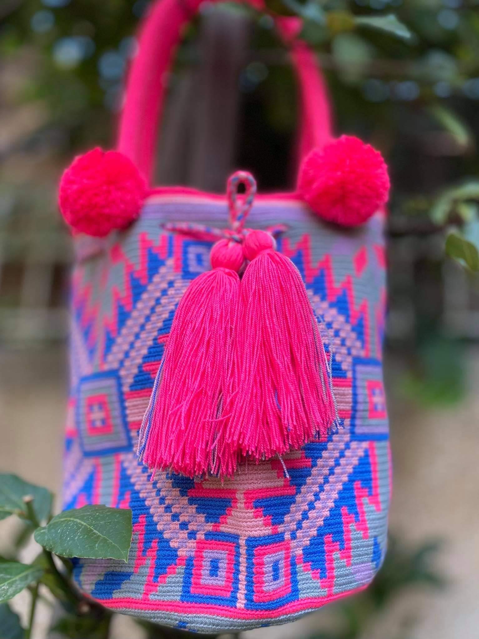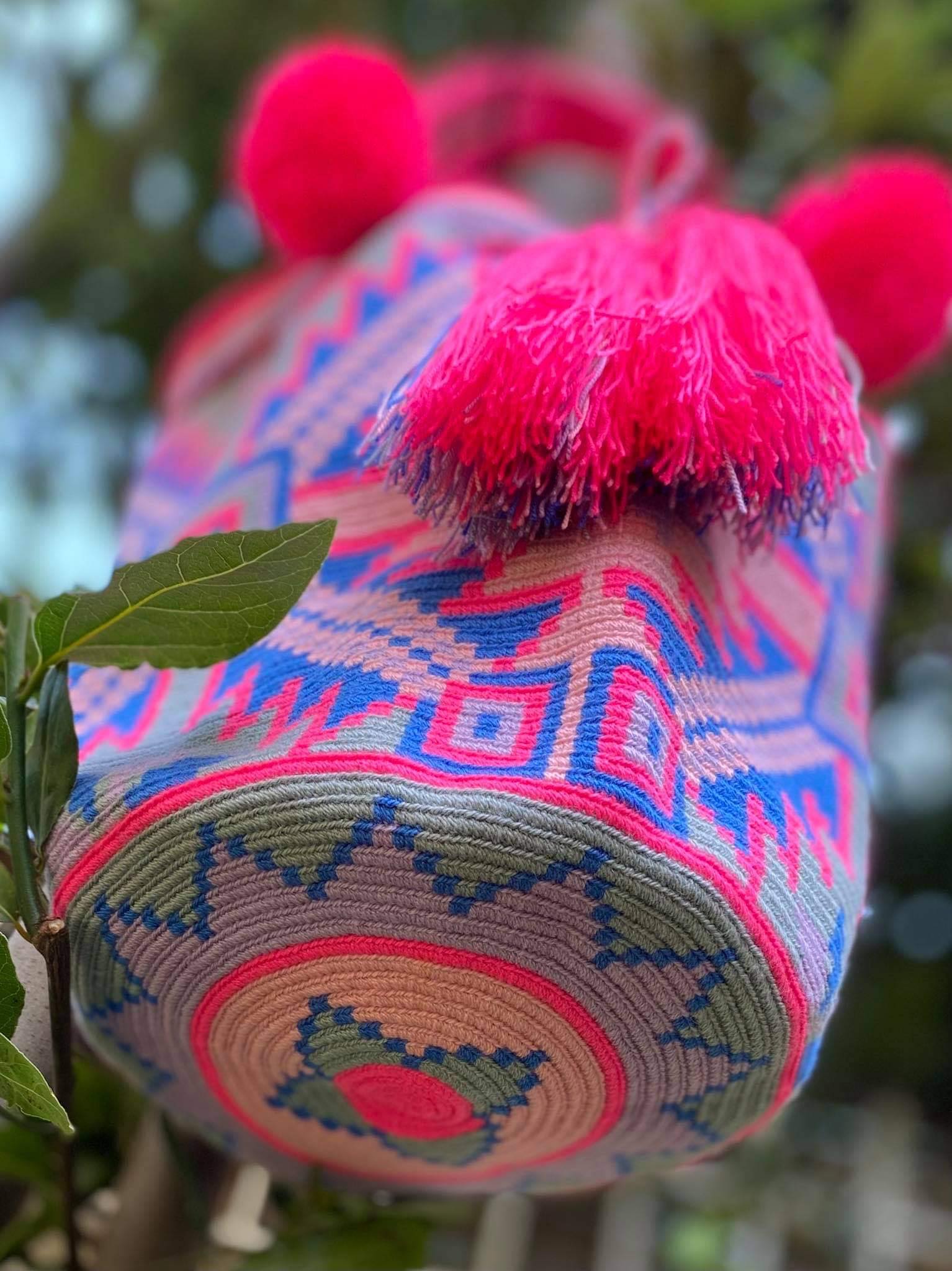 Μοναδική Χειροποίητη Κολομβιανή Boho Style Πλεκτή Τσάντα Fucsia, Azul, Rosa - Wayuu Mochila