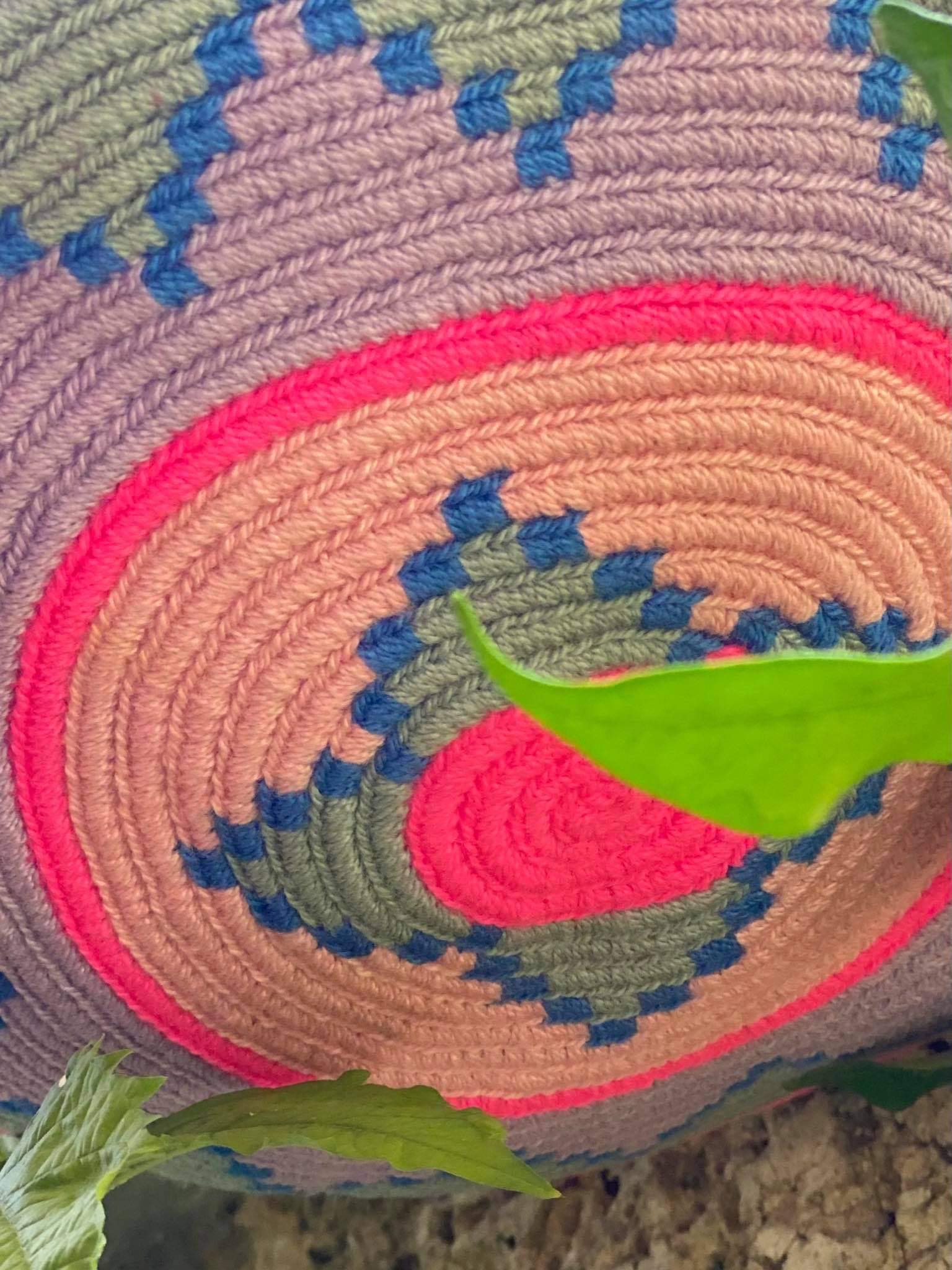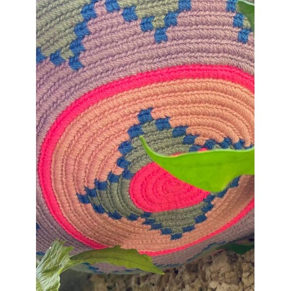 Μία και μοναδική wayuu mochila πλεγμένη με ντόπιες κλωστές και σε ντόπια χρώματα της φούξια, του απαλού-ξεθωριασμένου γαλάζιου και του ροζ, άμεσα από την αυθεντική κουλτούρα των Κολομβιανών εκτάσεων. Διαλέξτε τη δική σας. Τη ΜΟΝΑΔΙΚΗ δική σας!