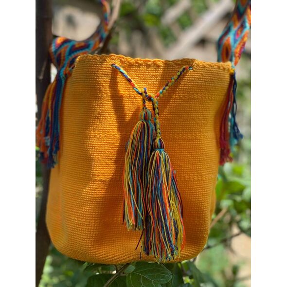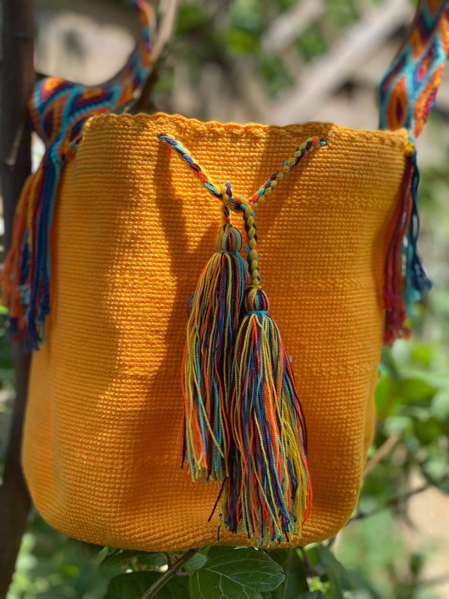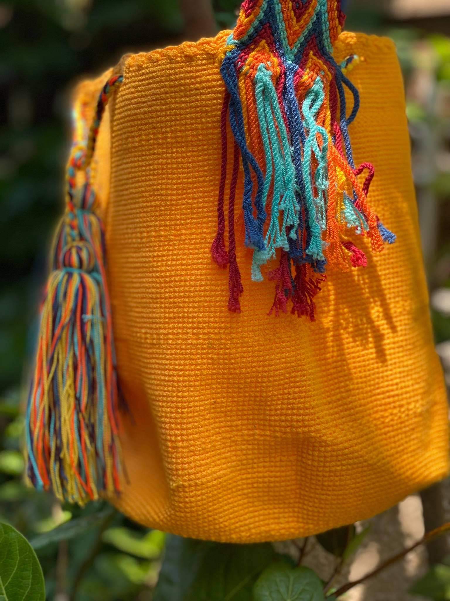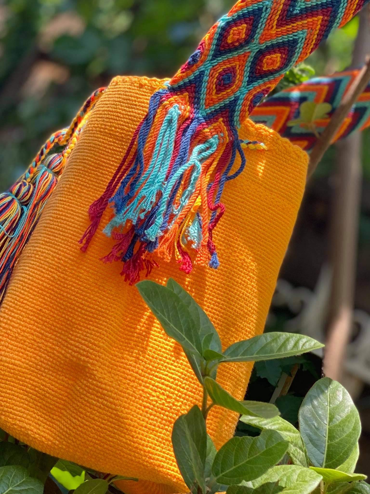 Μία και μοναδική wayuu mochila πλεγμένη με ντόπιες κλωστές και ζωηρά χρώματα από την αυθεντική κουλτούρα των Κολομβιανών εκτάσεων. Η συγκεκριμένηwayuu mochila διατίθεται σε ντόπιο πορτοκαλί χρώμα. Διαλέξτε τη δική σας. Την ΜΟΝΑΔΙΚΗ δική σας!