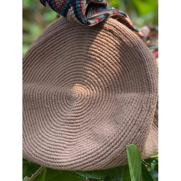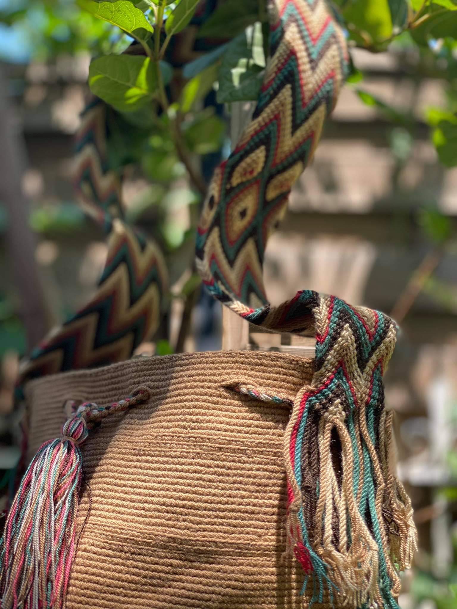 Μία και μοναδική wayuu mochila πλεγμένη με ντόπιες κλωστές και ζωηρά χρώματα από την αυθεντική κουλτούρα των Κολομβιανών εκτάσεων. Η συγκεκριμένη wayuu mochila διατίθεται σε ντόπιο χακί χρώμα. Διαλέξτε τη δική σας. Τη ΜΟΝΑΔΙΚΗ δική σας!