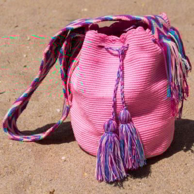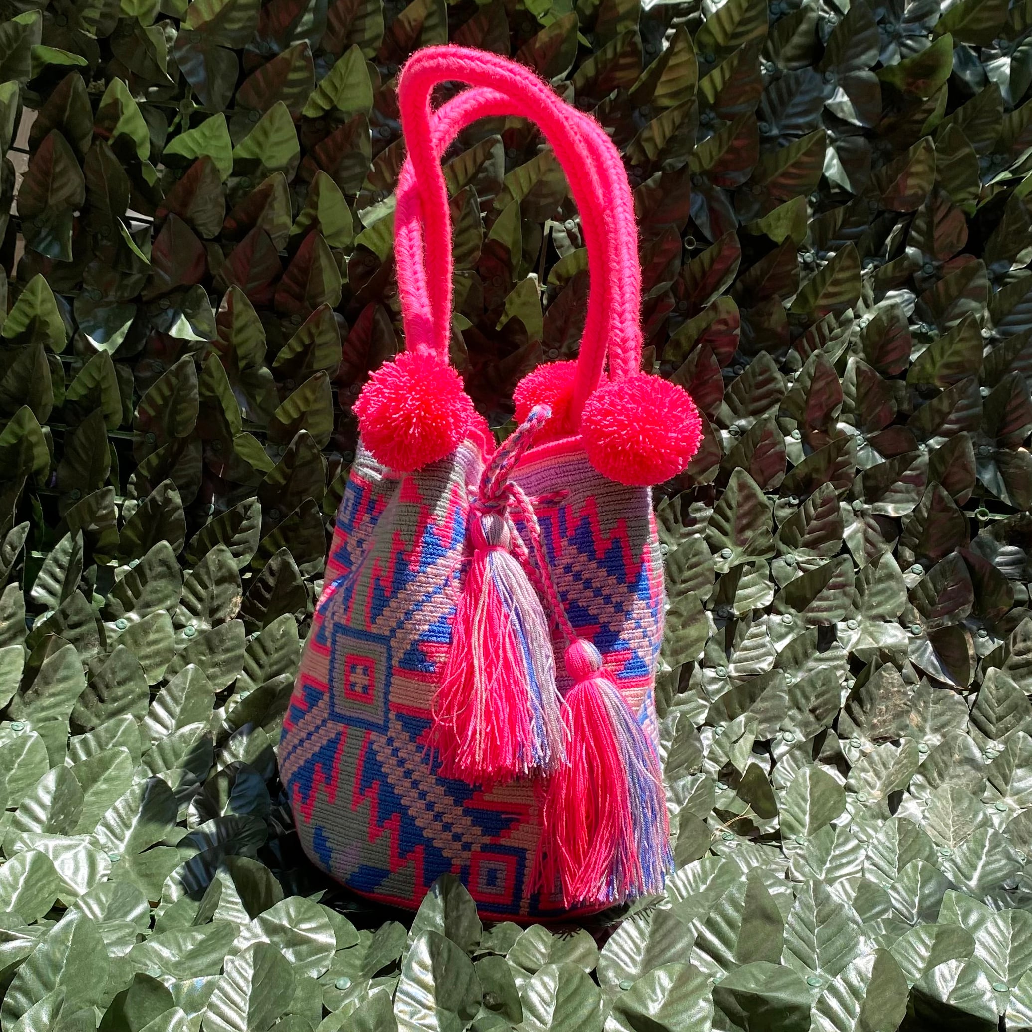 Μία και μοναδική wayuu mochila πλεγμένη με ντόπιες κλωστές και ζωηρά χρώματα από την αυθεντική κουλτούρα των Κολομβιανών εκτάσεων. Η συγκεκριμένη wayuu mochila διατίθεται σε έντονο ροζ χρώμα. Διαλέξτε τη δική σας. Τη ΜΟΝΑΔΙΚΗ δική σας!